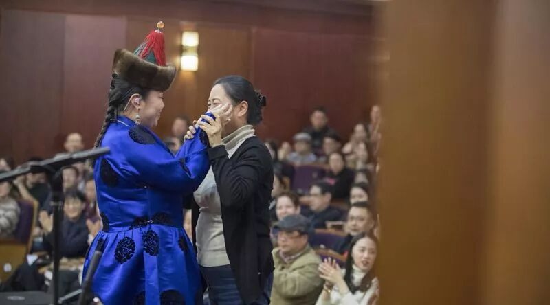 最后一部分,那日苏以“回归——创新、传承与发展”为题介绍了安达组合在内蒙古艺术学院所做的工作,包括“蒙古族呼麦艺术人才培养项目”、于2016年组建的内蒙古艺术学院民族音乐创新班——“安达班”、以及2017年成立的“安达民族音乐传承创新与传播中心”。