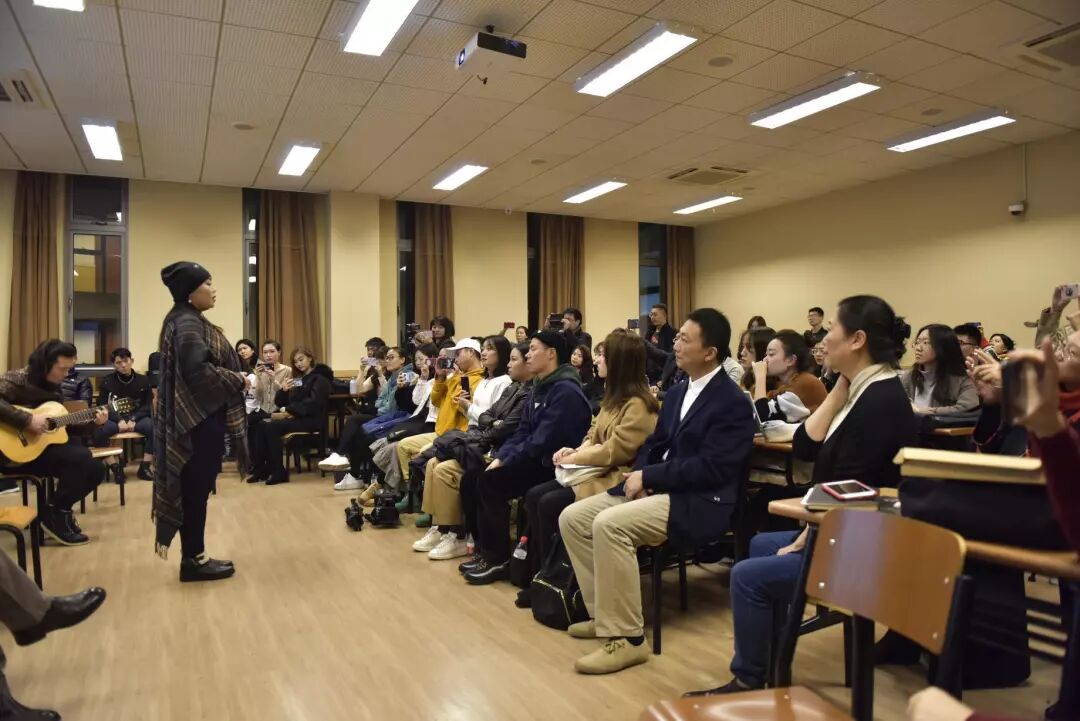 晚上的工作坊亦是座无虚席,安达组合和大家分享了他们一路走来的经历与故事。萧梅教授在开场主持中介绍到,安达组合有着对传统音乐独特的理解和创新,他们团员之间的默契、情感和对于音乐共同的坚持,是最难得、亦是最令人动容的。安达组合通过其人、其器与其乐,体现了当代语境下民族器乐表演者的多元身份及其主体性,通过他们对于传统乐器创造性的理解、改良与运用,在不断变化的社会与表演语境中,探索着传统音乐在当代新的可能。而这些,正是该课程意欲讨论的核心议题。