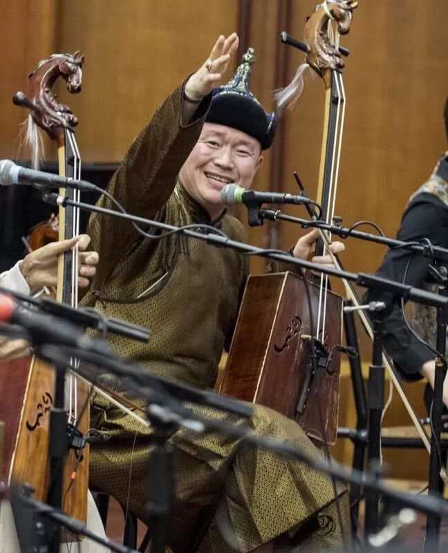 马头琴可以称得上是蒙古族音乐文化的象征,那日苏告诉我们,传统马头琴是用兽皮蒙面,但现代改制之后,通常用木板取代兽皮,类似西方的大提琴。但与之不同的是,许多蒙古族乐队都有自己独特的定弦,安达所用的马头琴定弦是C-F,是根据乐队的嗓音、曲目、音域和需求定的。那日苏提出,如果马头琴像大提琴一样统一定弦,可能会让这件乐器失去许多魅力。