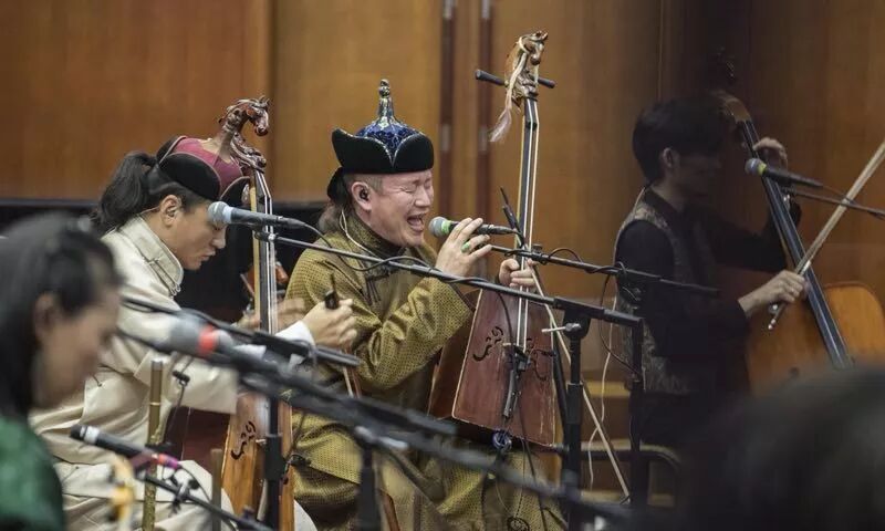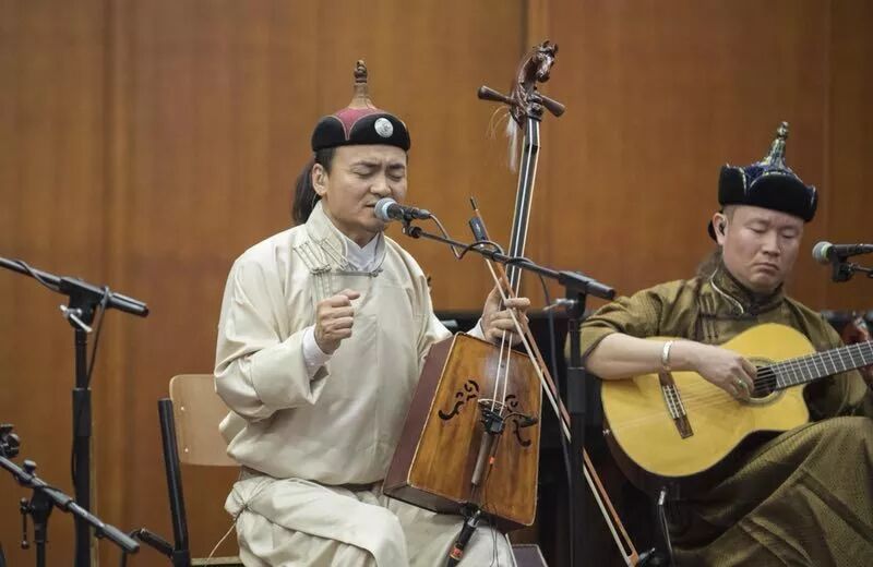 音乐会开始前,学术厅里的听众们就早已比肩继踵。这场由萧梅教授主持的音乐会在一首奔放洒脱的鄂尔多斯《酒歌》中拉开了序幕。台上的马头琴、冒顿潮尔、口弦、托布秀尔,这些都是蒙古族传统乐器,安达把它们从草原带到了都市、带上了舞台,让这些乐器在不同的表演语境中、以别样的方式诉说着蒙古族的故事。