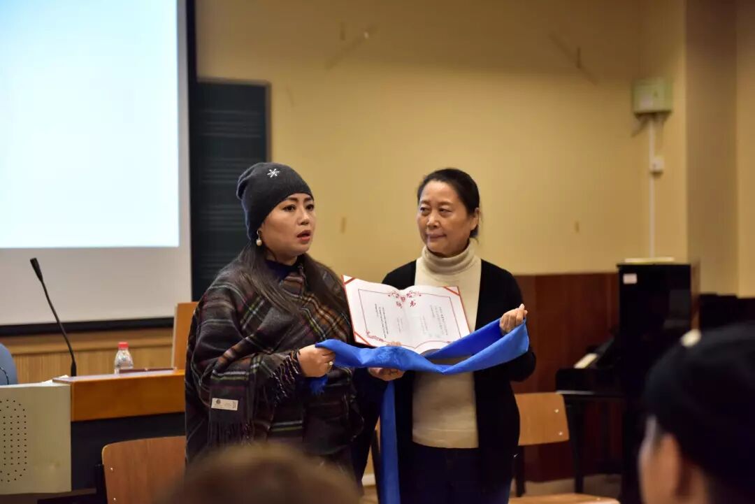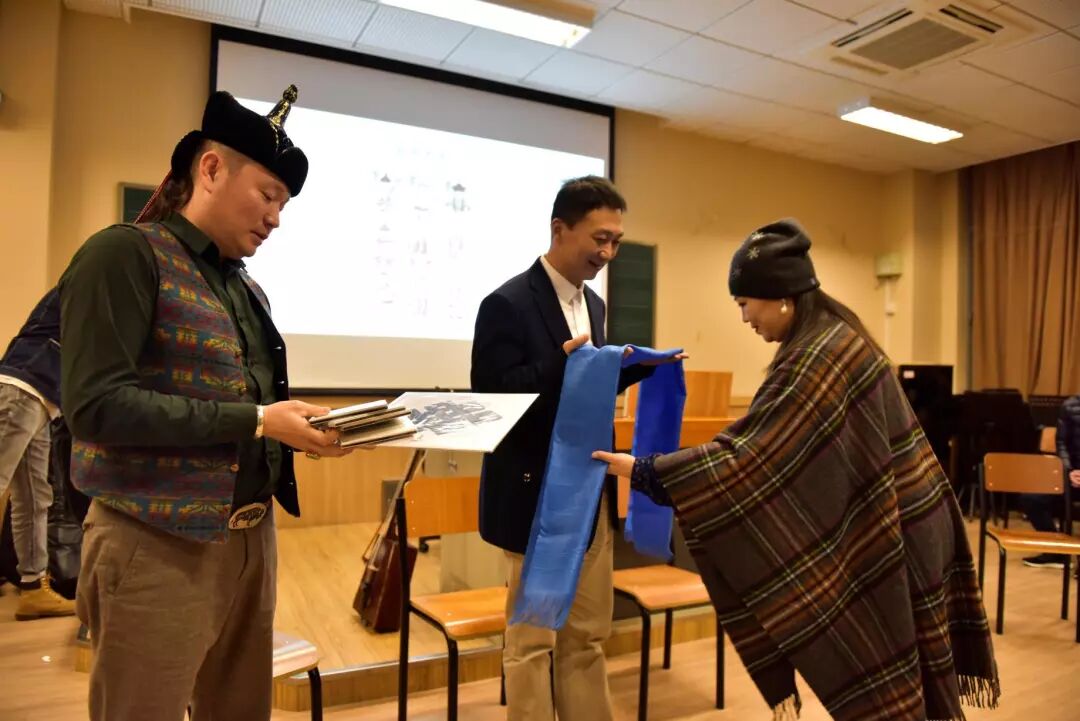 工作坊最后,其其格玛代表安达团队和内蒙古艺术学院,为萧梅教授颁发了“安达民族音乐传承创新与传播中心”艺术委员会委员聘书,并献上了对蒙古族人而言神圣的哈达。时任上海音乐学院院长的林在勇先生也到场与安达组合的音乐家们进行交流和互动,并对安达组合和“民族器乐的传统与当代演释”课程,给予了高度的评价。