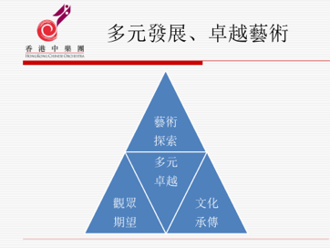 而下述的三张PPT,应该说是阎老师和港中乐团理念与实践的蓝图和缩影: