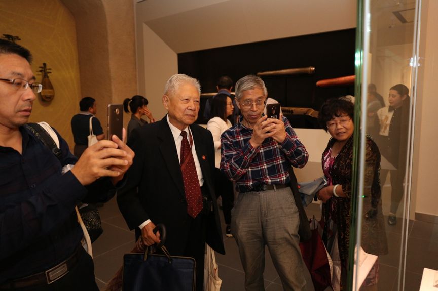 下午2点20分,全体参会人员到达闵行博物馆参观。闵行博物馆馆长刘静迎接欢迎。在博物馆工作人员的带领下,全体参会人员共同参观了“国乐风华——中国民族乐器文化展”。