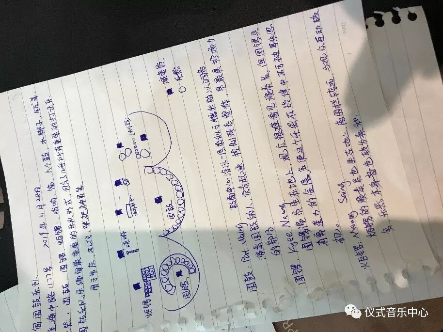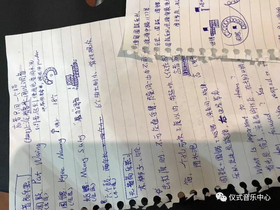 整个调音过程中,同学们都积极参与,认真学习。有的同学还将调音中学到的知识整理成笔记、图示的形式。进一步展示出缅甸传统打击乐器的独特魅力。