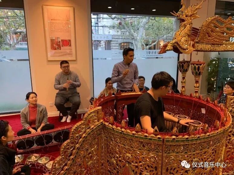 “缅甸的传统民族乐队讲座及工作坊”系列活动于2019年11月26日至2019年11月28日在上海音乐学院艺术成果展厅举办。此次讲座及工作坊活动共分为四部分,包括乐器调律、缅甸传统乐队讲座、缅甸传统音乐工作坊以及工作坊学习汇报演出。讲座及工作坊活动由上海音乐学院特邀艺术家,缅甸仰光大学艺术学院传统音乐教师、仰光科技大学艺术指导Htet Arkar Oo先生主讲及教习,上海音乐学院东方乐器博物馆邢媛老师主持,上海音乐学院音乐人类学在读博士刘祥焜翻译。