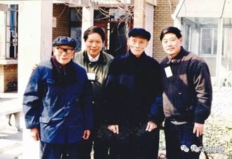 1994年正月十五元宵节,柳尧章(左一)、陈正生(左二)、金祖礼(右二)、戴树红(右一)拍摄于嘉定长征乡,上海江南丝竹界新春团拜
