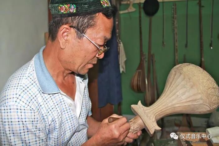 图2:乌兹别克斯坦希瓦的古迪耶萨拉耶夫用桑木和杏木制作的塔尔与热瓦普音箱(作者摄)