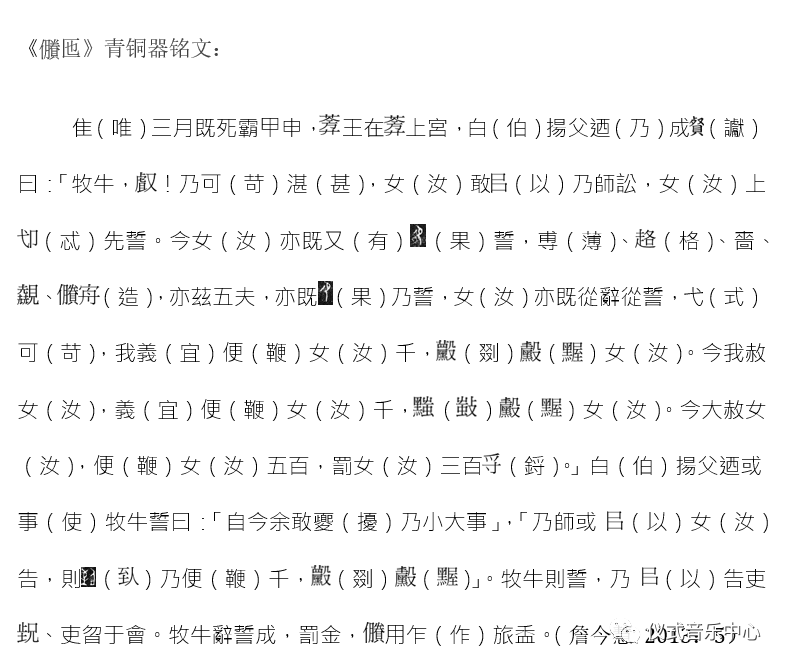 笔者的问题是,为什么这个司法事件需要通过铭文刻写在青铜器上?青铜器在此作为一个超时间的媒介,用来记录一个法庭“庭审”的对话笔录——可以想象这个诉讼事件涉及许多当事人,而且最终审稿定稿之后,派相关人记录之后进入青铜器的铸造程序,并以诉讼判决书的形式,记录了一个民告官但最终败诉的事件。换言之,这可以理解为将声音型知识,转写成视觉型知识的重要事件。