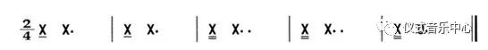 第二种是阴鬼师击打“啼啕”的声音。啼啕一定要敲的响,巴哼人观念中敲“啼啕”的“响”不是声音大,而是指符合特定的节奏律动。根据阴鬼师伯森冇(侄)的描述做分析,敲“啼啕”的时候要敲出特定的节奏型,如下: