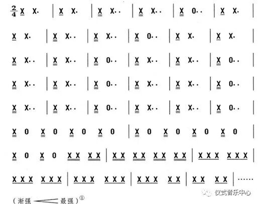 其次,作为“摇曳着的船”,其本身的“状态”则主要体现在了法器声的律动上,即敲击的“节奏”。