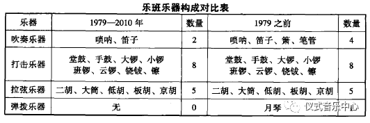 在乐器使用方面,主要体现为吹奏乐器与弹拨乐器数量的减少。《普查》的附录中曾记载: