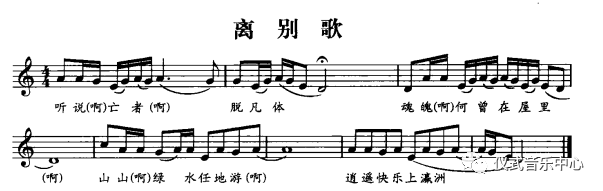 以下为陈后全在丧礼前一天晚上用辞别调演唱的《离别歌》,4/4拍,旋律接近当地语言,脱音较长,抒发对亡者的不舍: