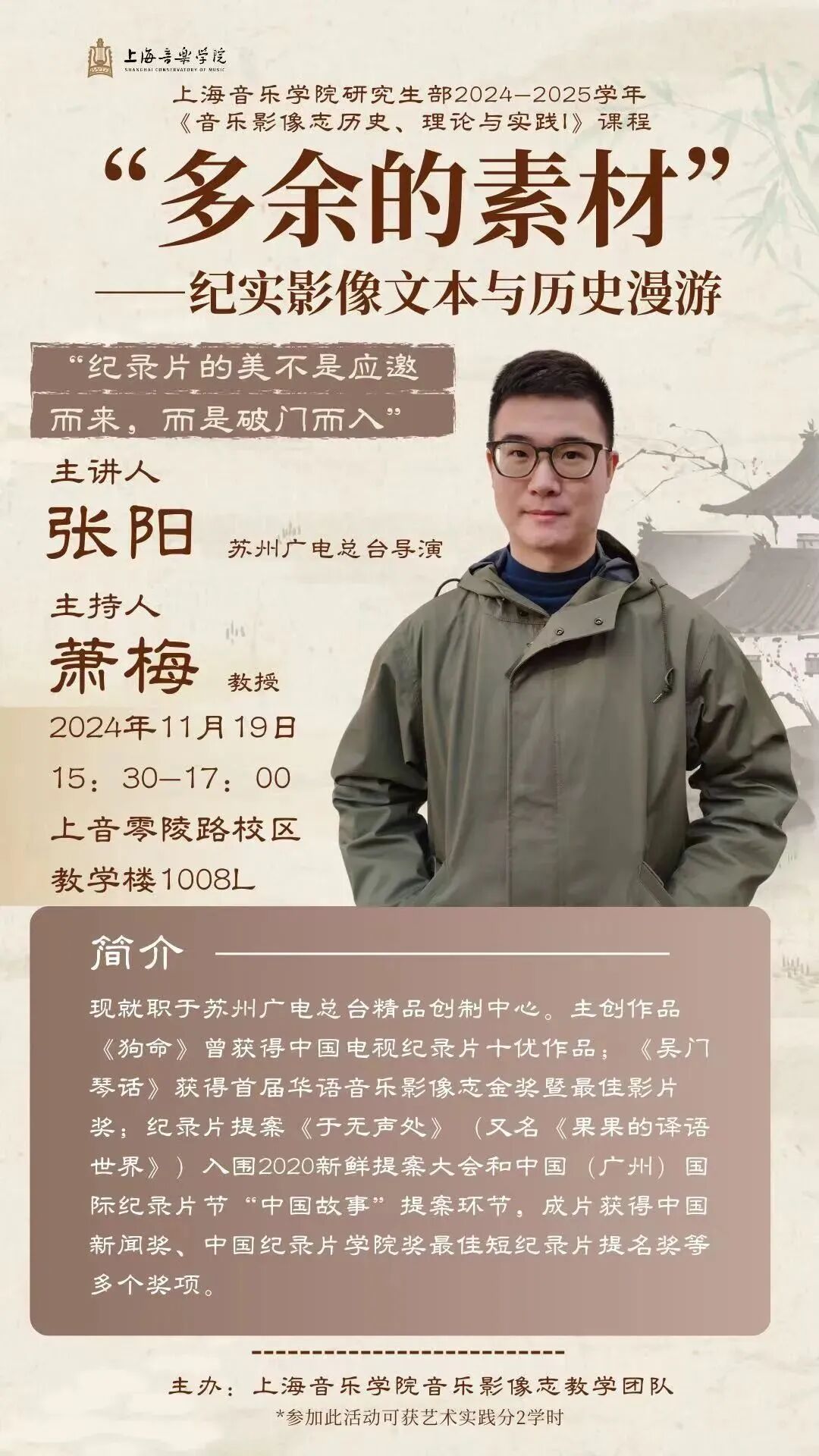 上海音乐学院2024秋季学期研究生课程《音乐影像志历史、理论与实践Ⅰ》