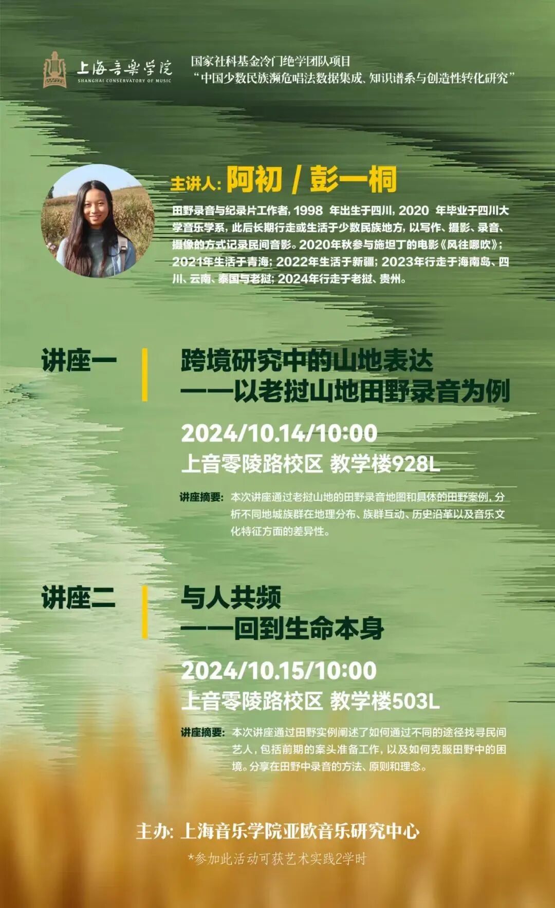 讲座:《跨境研究中的山地表达——以老挝山地田野录音为例》《与人共频——回到生命本身》