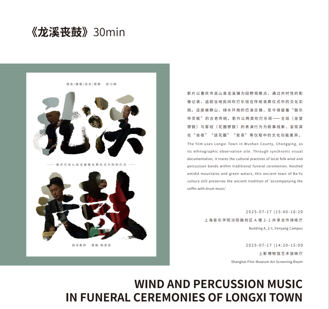 这是音乐影像志首次跨界进入电影学体系的重要一刻,学术与艺术共融、田野与银幕对话。我们诚邀你,和我们一起在光影中回响传统的回声、时代的节奏与未来的可能。