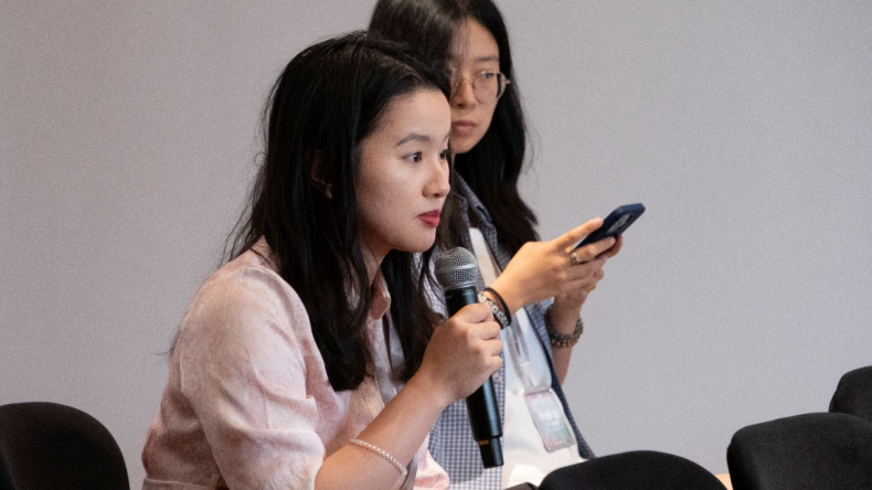 问答环节就布郎族音乐文化的保护与商业化问题展开了讨论。庄璨仪提到,在寺院和旅游场景中,传统音乐常被改编为表演项目,类似于布郎族音乐的舞台化现象,并质疑这种商业化是否偏离了文化本质。另一位回应者认为,尽管舞台表演可能失去原生语境,但为传统音乐提供了传播机会,例如电视节目《星光大道》通过混合编舞吸引观众,虽引发争议却也提升了民族音乐的可见性。随后,有听众指出文化传承者需平衡商业需求与伦理责任,避免过度迎合市场。最后,莱昂纳多·达米科分享了他尝试融合传统音乐与现代电子元素的实验视频。