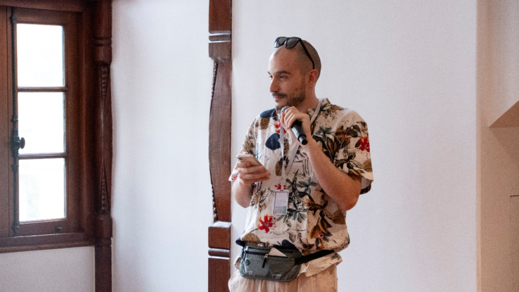第二位发言人是来自意大利卡利亚里大学的马尔科·卢祖(Marco Lutzu)副教授,发言题为《音乐影像志的图像叙事:来自意大利撒丁岛的案例》,探讨了在音乐人类学纪录片创作中融入插图、动画等图像叙事元素的潜力与方法。他指出,尽管视觉方法在人类学中价值日益受重视,但在音乐人类学影像志领域仍属待开发领域。他以讲述历史录音归还撒丁岛阿吉乌斯社群的纪录片项目T505为具体案例,展示了如何通过与专业插画师合作,将图形元素融入影片叙事,以独特视角呈现音乐传统、历史事件及音乐人类学先驱加维诺·加布里埃尔的贡献。