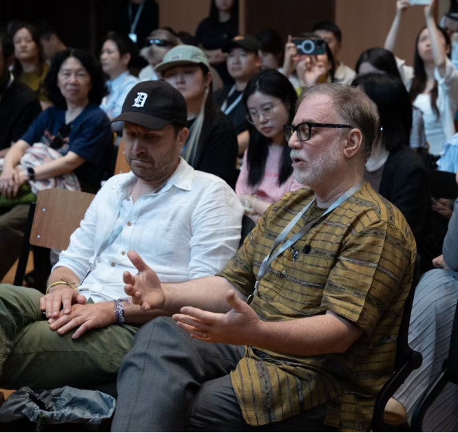 在问答环节中,托马斯·米切尔·斯克拉格斯(T.M.Scruggs)首先提问,希望了解更多关于泰乐器维护的具体细节,例如金属结构和乐器构造的关系。李海伦回应称,泰乐器维护与西方传统不同,音乐家通常能自行完成大部分维修,并举例说明如何用筷子临时修复断裂的木棒。从个人经验出发,提出乐器与演奏者之间的亲密关系,建议通过特写镜头展现维修过程中的细节,以增强观众对乐器“生命”的理解。凯特·亚当斯(Kate Adams)则关注影片如何通过镜头语言传达空间感和参与者的情感,建议采用更灵活的拍摄手法(如手持镜头)来捕捉现场的真实氛围。最后,李海伦补充了孟族围锣对泰社区的文化意义,并分享了一个关于乐器“拒绝调音”后通过精神仪式解决的轶事。