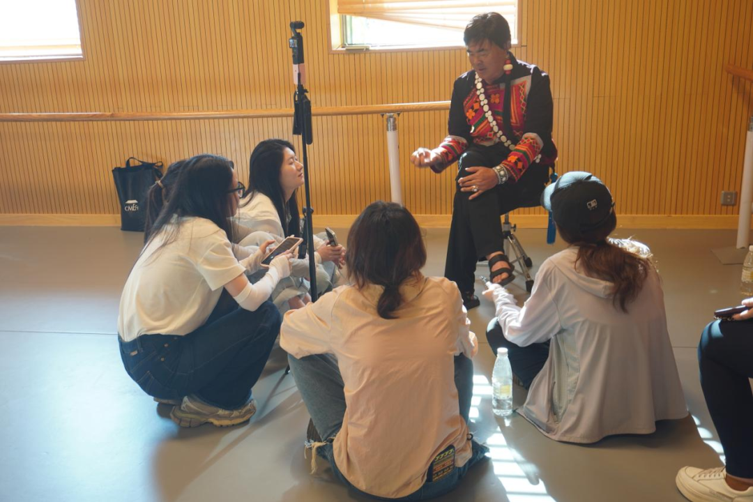 阿洛克古和阿体拉比表演了彝族“克智”,这是一种诗体口传文学形式。虽然大家并不完全理解“克智”演唱的唱词内容和细节,但是他们在演唱“克智”时的情绪、语调、韵律都深深影响着听众。最后,沙马毕摩为大家带来了《祈福经》和《招魂经》,每首曲调都以“ꋬꂻ”结束,彝语有吉祥之意。在交流过程中,传承人们与学员们分享了诸多彝族歌唱文化的信息,以及他们“万物有灵”的观念。