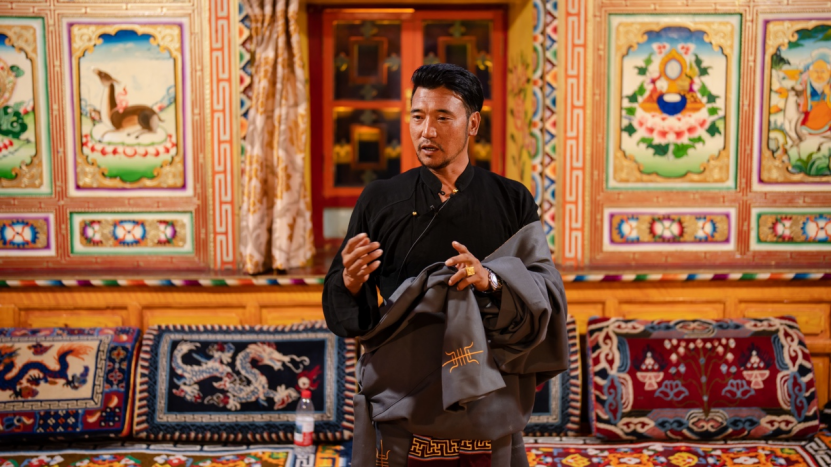结合自身经历,洛让吉布讲述了木雅山歌在不同社会场景中的多样化呈现形式。在谈到酒歌时,他特地邀请了自己的好友,现场为大家演示了《划拳歌》,生动展现了木雅藏族人民在日常生活中对民歌的运用。
