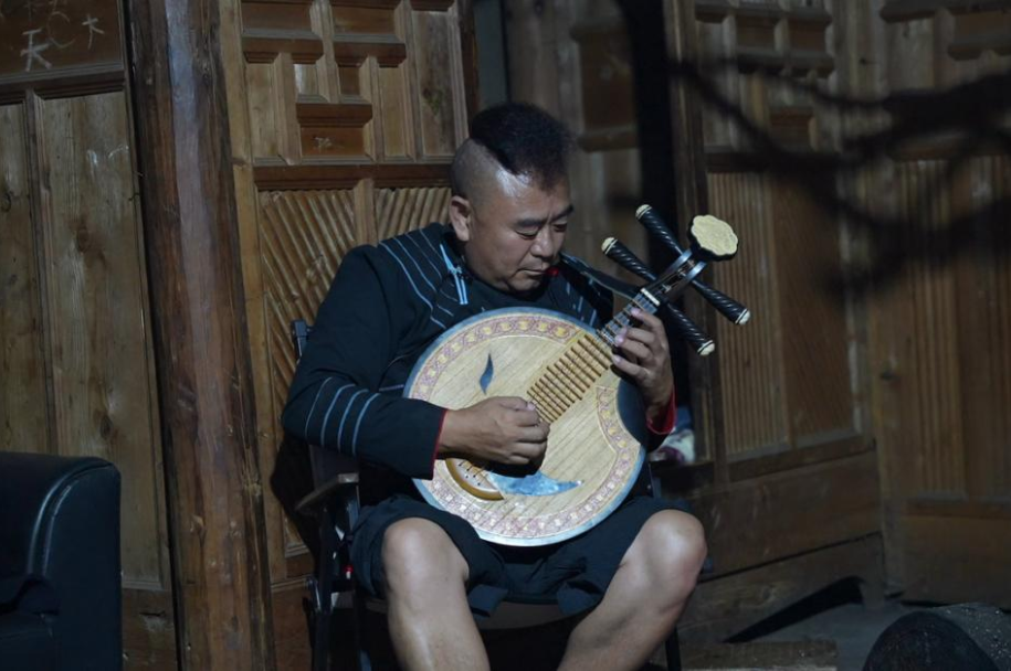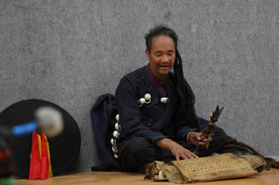 晚九点,我们又跟随阿力菲拉毕摩前往文化馆,感受彝族宗教中地位最高的毕摩的声音。他吟诵着仪式中的招魂经,为我们祈福。