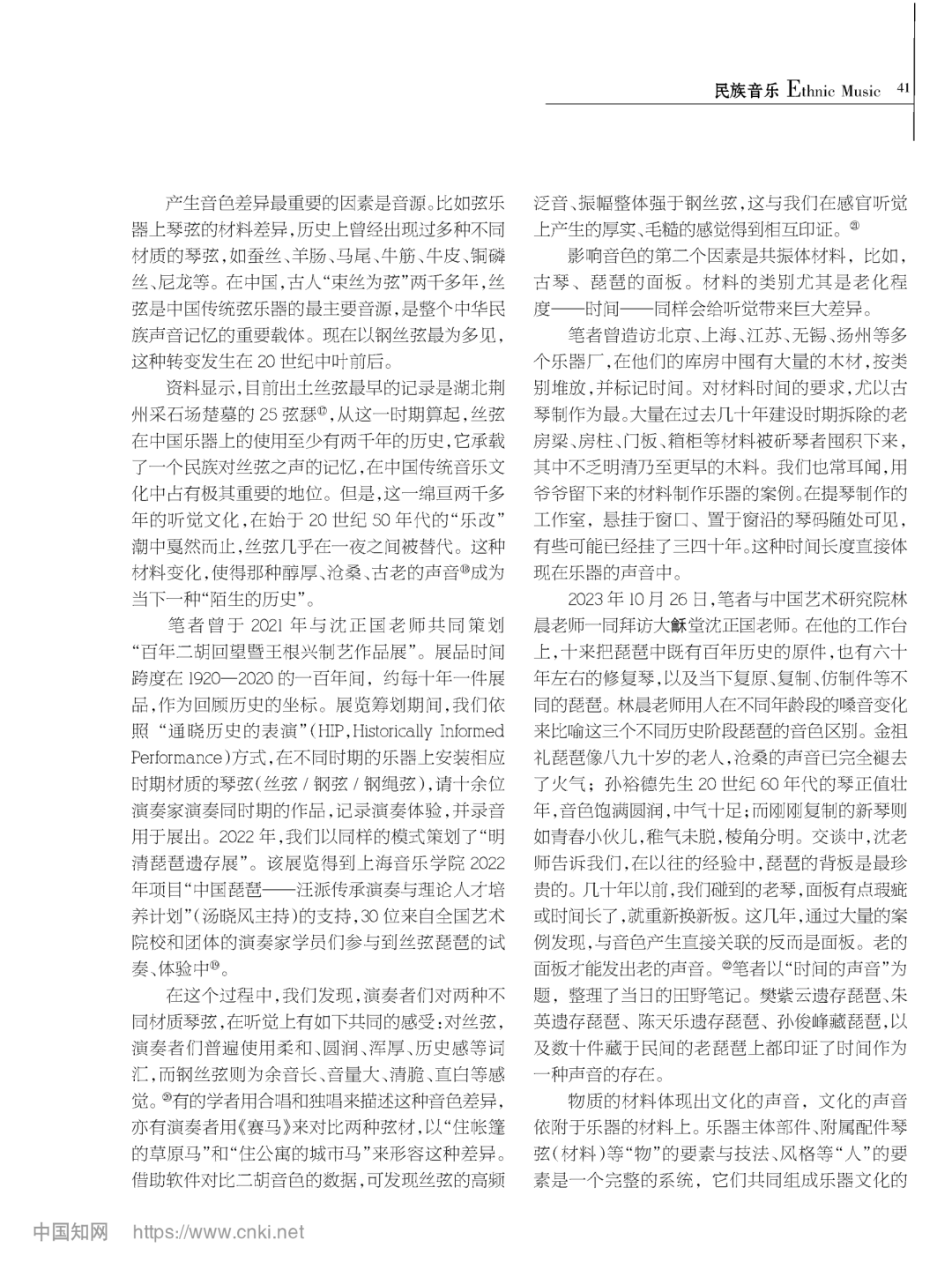 2019年,当我和学生们一起策划和实施《丝弦清音忆江南》的丝竹音乐会时,深切地感受到“乐器”的形制、材料、制作方式,是一系列音乐文化变迁的轴承。“器”之不同的物质形态,同时是重要的“信息载体”,无论是演奏技法、声音色彩、音律标准、身体感知、聆听惯习……皆与“它”相关。2020、2021、2022年在连续参与了上海音乐学院东方乐器博物馆的三个展览《雪梅赋-以古今月琴感念月琴制作师韩常树》《百年二胡回望暨王根兴制艺作品纪念》《明清琵琶遗存展》,以及指导学生撰写相关展陈乐器的研究论文和田野调查时,我深深为“器-乐-人”之间的关系及其历史脉络所蕴含的自然与人文信息所震撼。与考古实物、文字文献、石刻图像不同,乐器所承载的过去,不仅仅是器之“物”的属性所得以考辨的历史;更重要的是此“器物”始终在与人的关系中获得其“乐”的意义和社会生命、社会关系。此外,学术研究不可避免涉入当代的音乐生活,无论是非物质文化遗产的保护,还是专业音乐的发展。面对生活世界,知识的逻辑与实践的逻辑虽然关联,但却各有立场和路线。进入21世纪以来,应用民族音乐学(AppliedEhnomusicology)与“行动民族志”愈益成为知识再生产的范式。李亚和我曾以《丝弦清音忆江南——通晓历史的表演实践》一文报告了2019年我们与上海城隍庙联合民间乐社、音乐学院师生举办的一场意在“唤起老城厢声音”的古乐探索音乐会。自那场音乐会后,老乐器的复原,曲目和曲谱的复排,沉浸式演出方式在上海悄然复苏。然而,形式上的改变是容易的,真正能捕捉历史的神韵则需要更多的实践,甚至于脱胎换骨。近年来东方乐器博物馆和上海音乐学院仪式音乐研究中心、亚欧音乐研究中心与民族音乐学家、策展人、乐器制造者、演奏家们持续合作,努力推出系列以江南丝弦乐器为中心的历史信息项目——“拾回蚕丝的声音”,力图在行动中揭示江南丝弦乐器在结构、音色、演奏技术和传统曲目方面百年演变的动因;还成立了由上海音乐学院学生担纲的“樂龠组合”小乐团。2005年,项目组的邢媛博士与程之伊博士候选人分别在《人民音乐》第6期发表了《作为特殊文献的老乐器——材料、声音和文化遗产》《丝音再起——老乐器生态的重建与文化遗产传承的策略途径》,讨论了几年来在二胡和琵琶的修复过程、以及修复中发现的历史证据、修复的挑战和关键点,不同琴弦材料所产生的各种演奏技巧和声音美学。包括如何将应用民族音乐学的理论与弘扬中华优秀传统文化以及非物质文化遗产保护的具体实践相结合,学术研究如何赋能传统音乐的当代生命力等等。本公众号特别分两期转载她们的论文,以飨读者,并欢迎共同讨论。(萧梅)