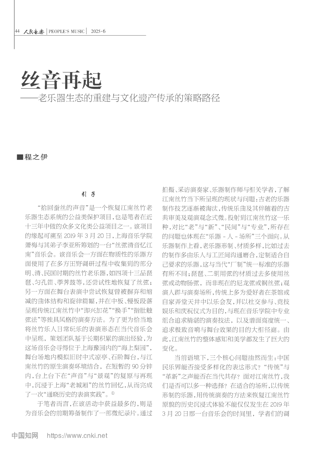 程之伊|丝音再起——老乐器生态的重建与文化遗产传承的策略路径