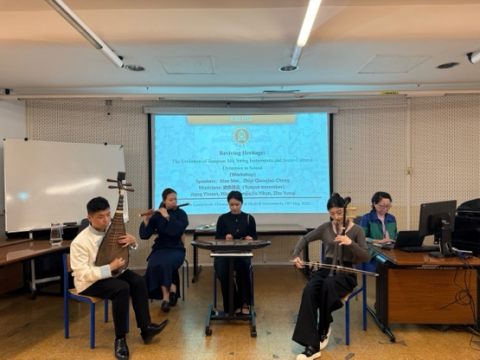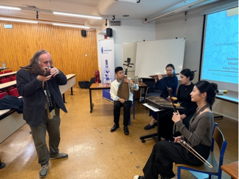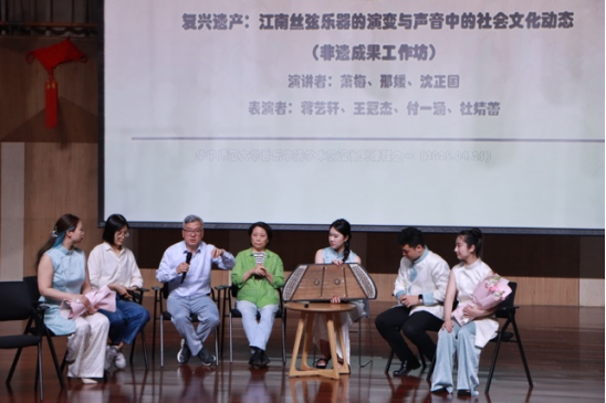 会议的最后一天,项目组带来了题为Reviving Heritage: The Evolution of Jiangnan Silk String Instruments and Socio-Cultural DynamicsinSound(《 复兴遗产:江南丝弦乐器的演变与声音中的社会文化动态》》)的工作坊,由萧梅教授、程之伊及“乐龠组合”成员依次完成讲演与演示。