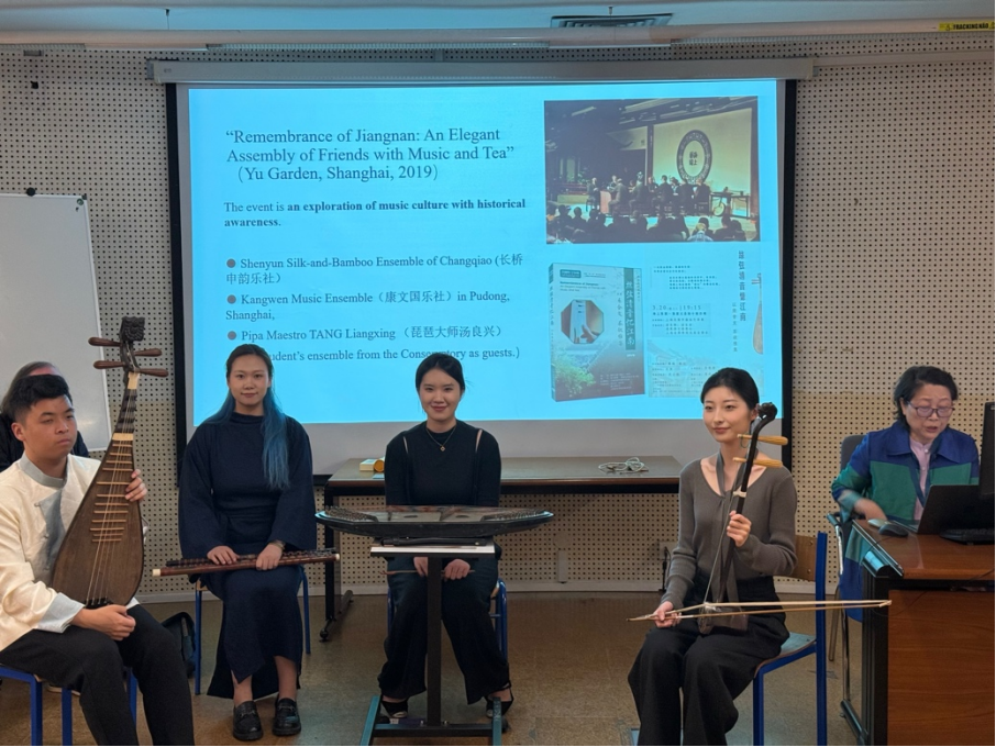 2025年5月7日至10日,“拾回蚕丝的声音”项目学生团队“乐龠组合”在上海音乐学院音乐学系萧梅教授的带领下,受邀前往葡萄牙里斯本,参加以“拓展视野:拥抱亚洲音乐与舞蹈的多样性”为主题的第八届中国音乐与乐器国际会议。会议聚焦中国及亚洲传统音乐与器乐实践,汇聚多国学者与表演者,围绕亚洲音乐文化的多样性开展研讨与展演。