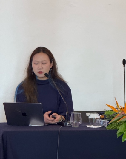 在4月9日分会场发言环节中,项目成员蒋艺轩发表了论文Collecting Dust: Sensory Memory in the Performance Practice of the Yunkong Di(《拾起尘埃:匀孔笛演奏实践中的感官记忆》)。她结合自身田野经验与硕士课题研究,回顾了匀孔笛在中国传统音乐中的发展沿革,分析其与“调门—指法—情绪-曲目”之间的深层关联。她指出,匀孔笛的衰落不仅是物理形制的改变,更意味着与之配套的感官经验与演奏逻辑正在被集体遗忘。通过“拾回蚕丝的声音”项目的合奏训练,她感受到了复兴传统音乐不应止于“器物复原”,而是一个重新建立声音与身体感知关系的过程。
