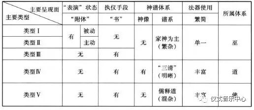 仪式中的用乐从外部形态来说丰富多样,不尽相同,但都遵循了一些模式进行。仪式用乐的模式主要以执仪者的不同类型为区分,但也并非绝对一一对等,或是决然割裂。各种仪式活动类型的仪式用乐依据仪式的具体内容而定,或简或繁,或长或短,在此,主要从大致整体的模式类型做初步地考察。
