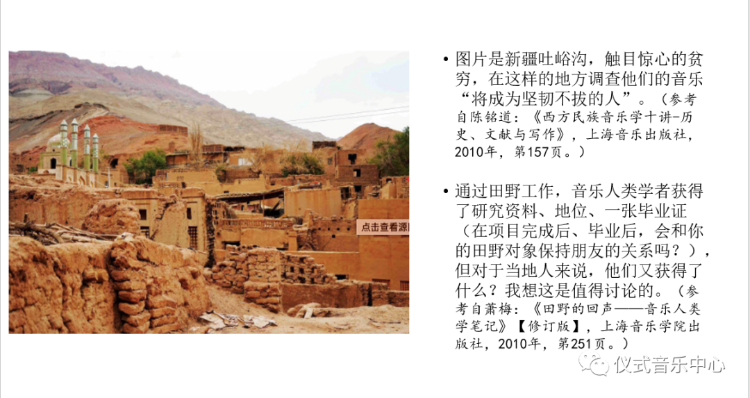 作者Bruno Nettle结合了自己的田野考察经历——波斯音乐研究加以说明。他们与当地的音乐家沟通,并且收集了录音,最后对其分析。但,Bruno Nettle也提出了两个田野伦理问题,如PPT中所示。