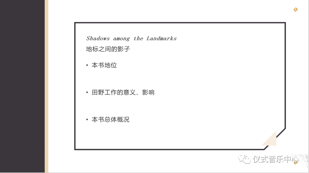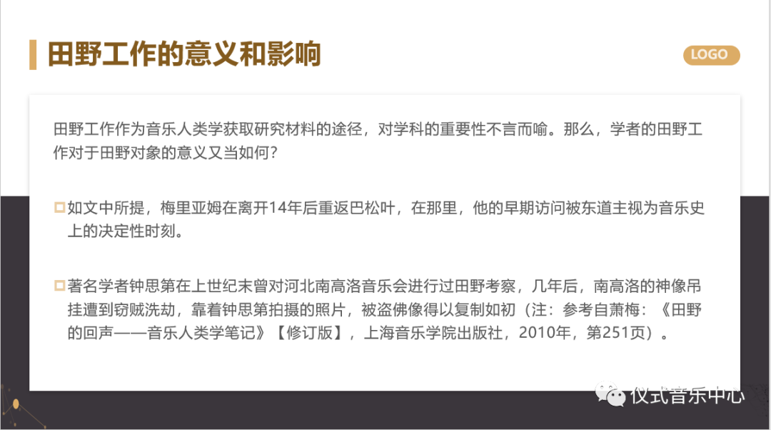 本期推文共推出三组同学的阅读汇报,即《中国大陆民族音乐学实地考察1900-1966——编年与个案》、ShadowsintheField前言部分以及《音乐人类学的实地考察》。另外,课堂研讨部分附在本期推文“《音乐人类学的实地考察》”下方,供大家阅读。