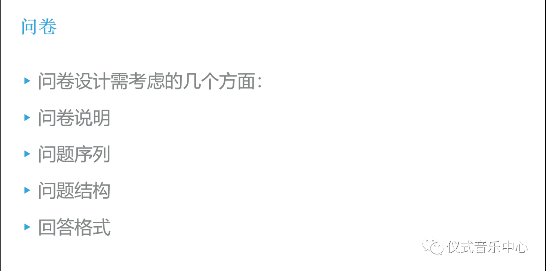 文章接下来是“问卷”部分,主要说明了一下问卷设计需要注意的几个方面。