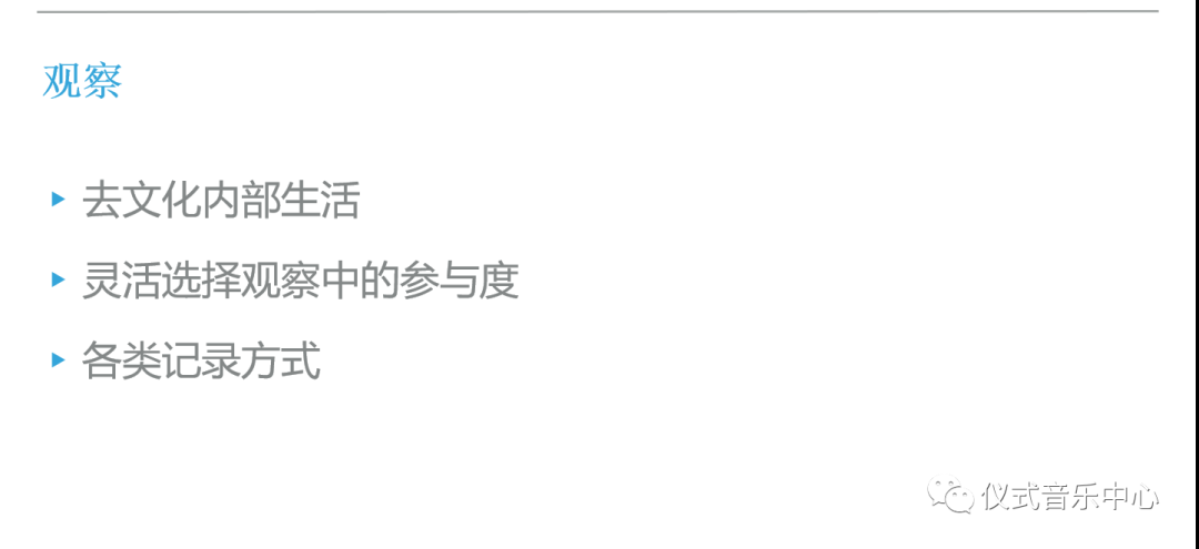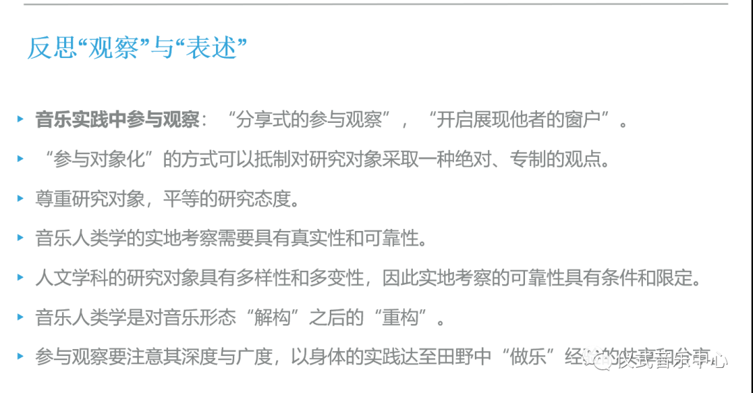第四部分是观察,强调作为研究者的我们要到特定音乐文化内部中去生活。