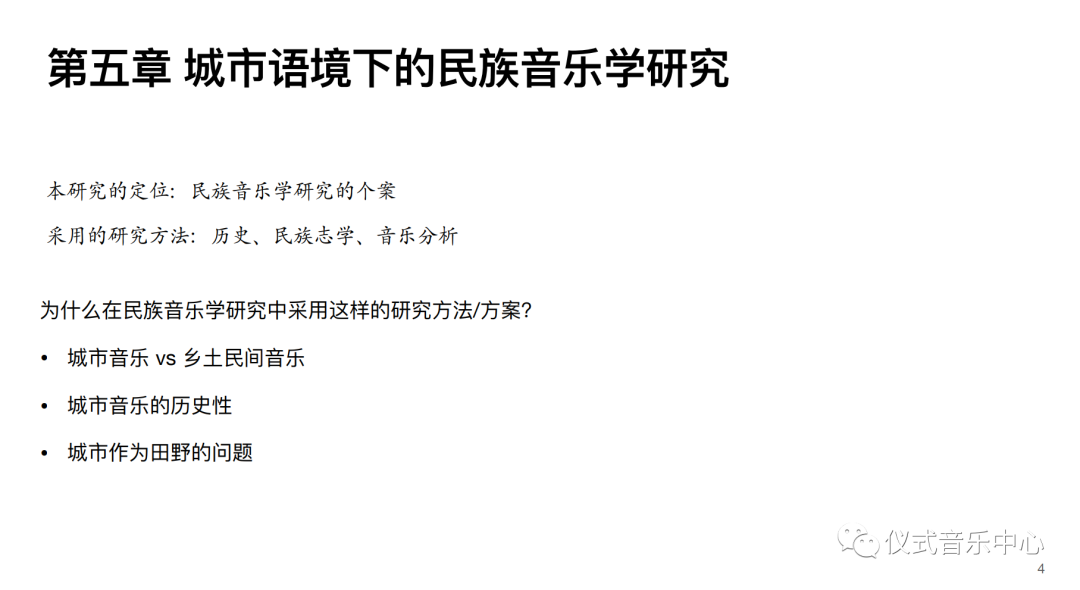 作者对本研究的定位为“民族音乐学研究的个案”,采用的研究方法则包括历史、民族志学、音乐分析等。与当时音乐人类学界所推崇的参与式实践型民族志书写方式不同,本书更为强调历史,以描述为主。作者的解释从三方面展开。