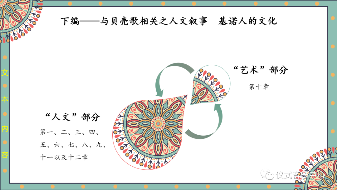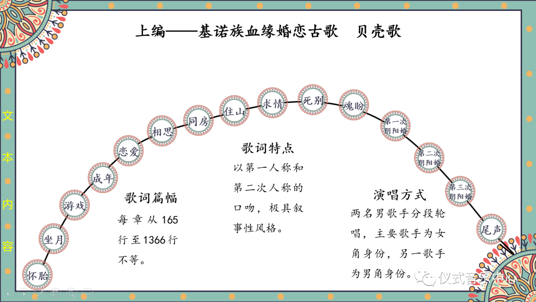 下方PPT是关于《贝壳歌,基诺族血缘婚恋古歌实录及相关人文叙事》一书的文本结构。
