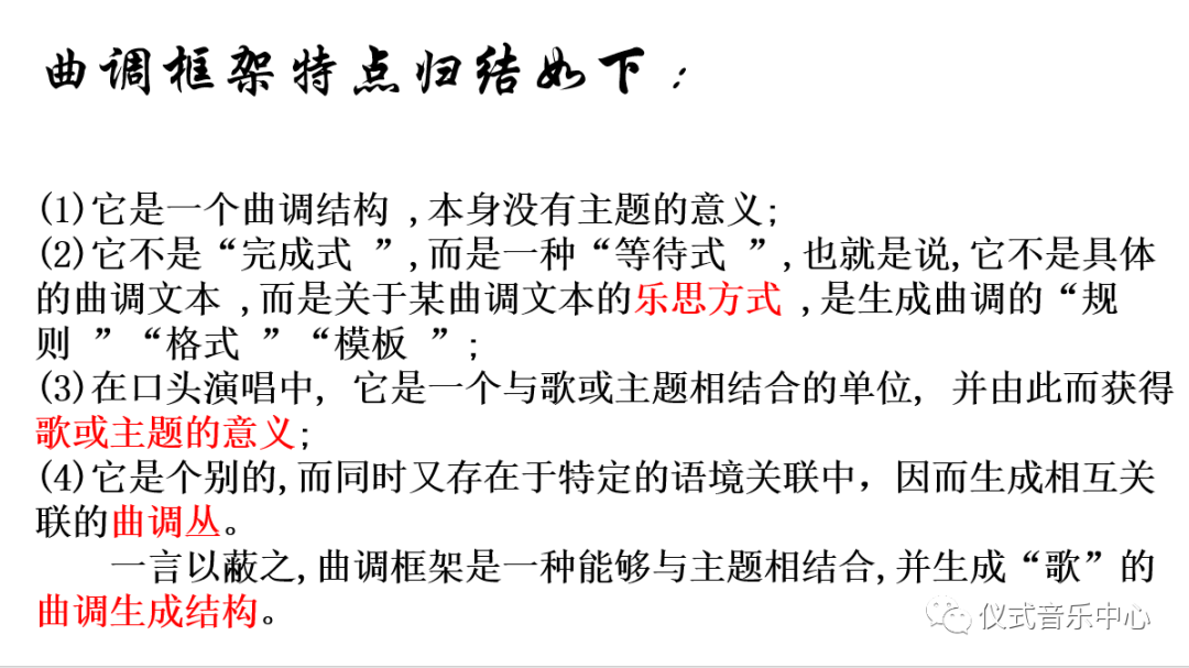 下方PPT是关于曲调框架的特点。