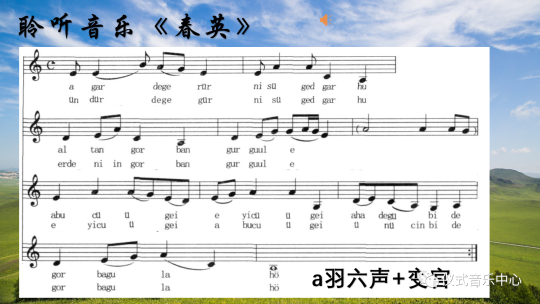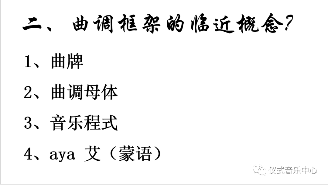 下方PPT关于蒙古族音乐中“艾”(aya)的概念。