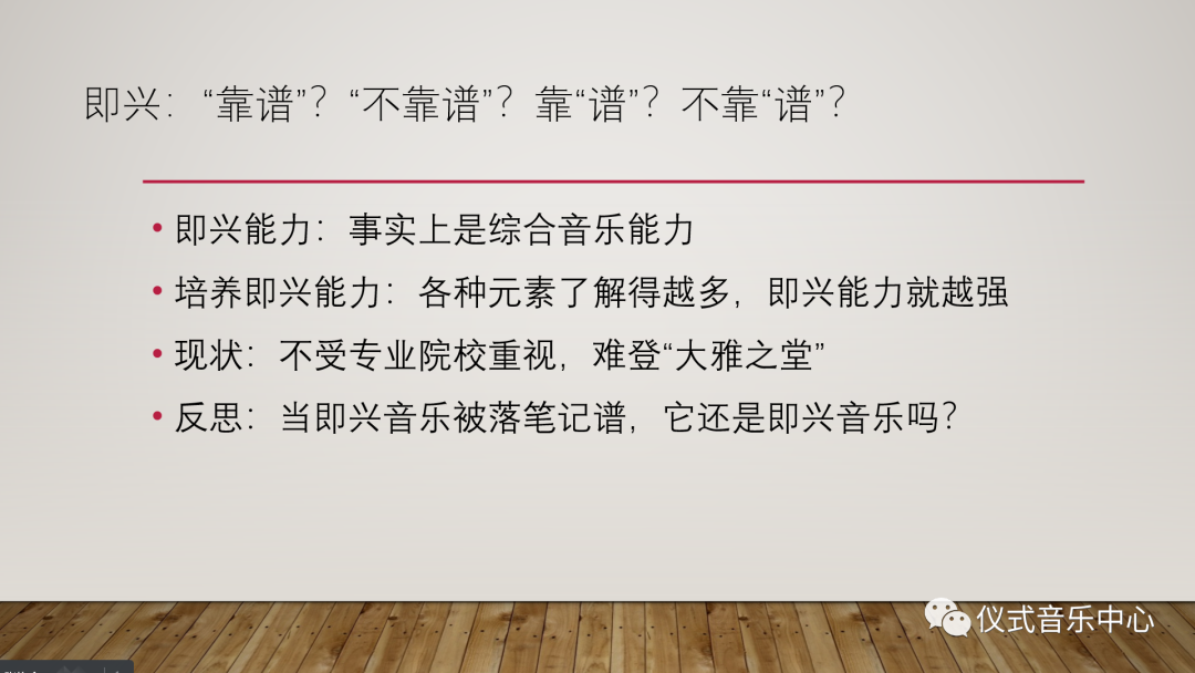 我们小组阅读后也有些反思,我们认为即兴能力实质上就是一种综合音乐能力,只有了解和掌握的各种音乐元素或能力,演奏者的即兴能力就会越强,而当下中国传统音乐的即兴演奏不受专业院校重视,难登“大雅之堂”,这也是值得我们去反思的现象与问题,最后,我们提出问题:“当即兴音乐被落笔记谱,它还是即兴音乐吗?”供大家探讨。