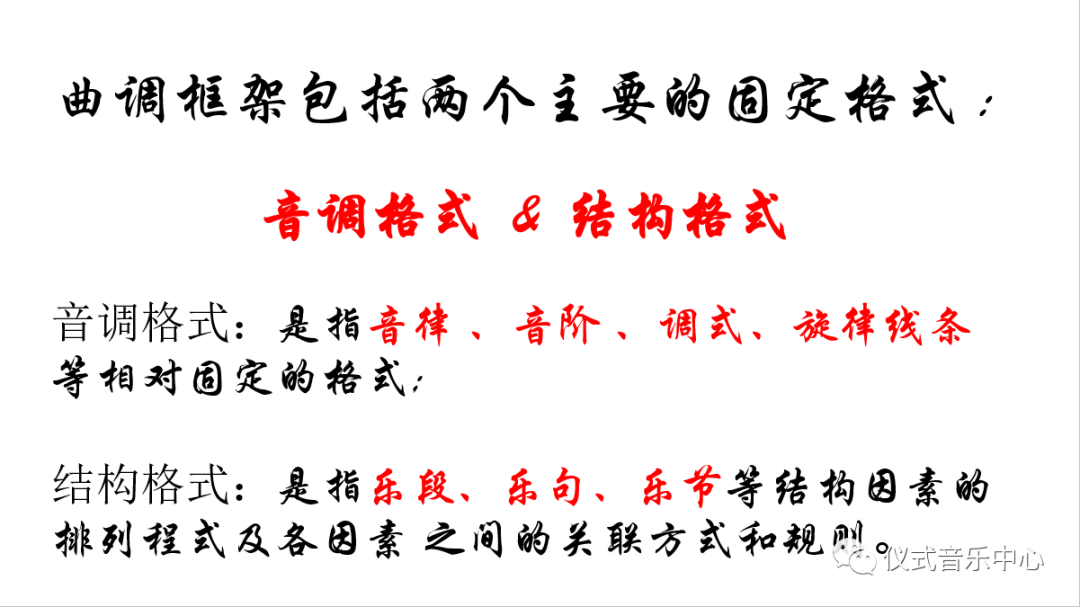 曲调框架包括两个主要的固定格式:音调格式、结构格式。