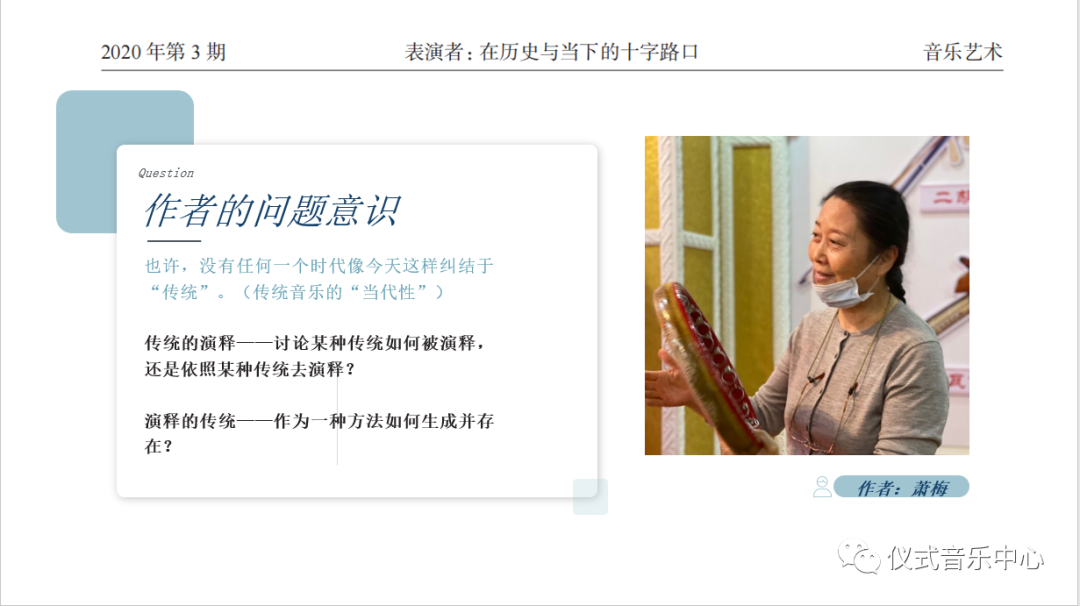 我们小组汇报的第二篇文章是萧梅老师的《表演者:在历史与当下的十字路口——兼论传统的演释与演释的传统》。