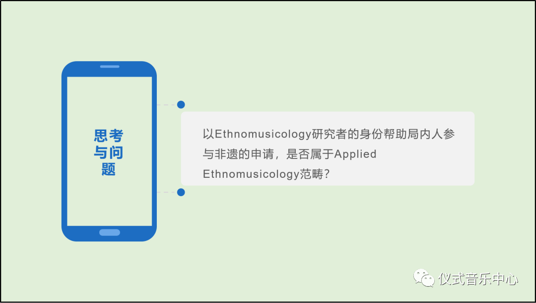 最后,王莹莹小组提出了她们自己的问题,即以音乐人类学研究者的身份帮助局内人参与非遗的申请,是否属于应用音乐人类学的范畴?我们又该如何理解这一现象?