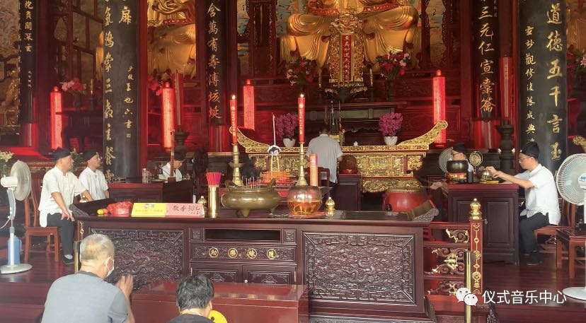 9月11日下午,我到了苏州非遗办咨询了苏州堂名传承人的联系方式,12日上午,我有幸在玄妙观正殿观看了一场早课仪式。虽说前一天拜访未果,因为值班的道长说:“现在都没有什么人来了,我们也就例行公事啦,你看我们现在都下班了”。且据说乐器的配置和乐手并不完整,一人是演奏数件乐器的,但是我所见到的仪式仍然是较为有序的,乐音绕梁、且香客络绎不绝,也并不是想象中的冷清。