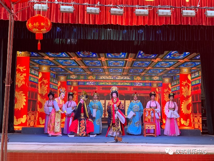 约下午一点半左右,演员们陆续来到后台准备,灯光音响师测试着面前的调音台及各类设备。两点整,团长在后台提示司鼓师傅演出可以开始,伴随着【开场锣鼓】的喧闹声,《成康登基》(上集)正式开演。