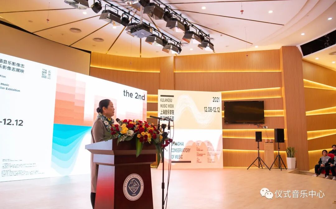 随后上海音乐学院亚欧音乐研究中心主任萧梅教授在致辞中对上海音乐学院、厦门市教育局、厦门市音乐学校等支持本次活动的所有单位及领导表示衷心的感谢。她提到:“华语音乐影像志暨国际音乐影像志展映”已创下三个第一:中国第一个以音乐为对象的纪实类影展,国际第一个以音乐为主题的电影节,以及国际第一个华语音乐影像志展”。她强调,“这一活动在‘复兴中华,讲好中国故事’的大背景下具有学术里程碑式的意义。同时,这一系列活动的举办也推动了音乐人类学与戏剧影视学的跨学科融合”。
