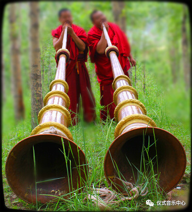 大象守卫着世界各地,大象的声音也是最神圣的,而法号低沉的声音则是传说中大象的吼叫声。这种传说据说源于莲花生大师。莲花生大师应邀到奥迪衍那(古印度一地名),他没有机会聆听超凡神塵的海象的叫声,一些印度朋友为此赠送给他一把声似海象的大号。(嘉雍群培,2008:133)