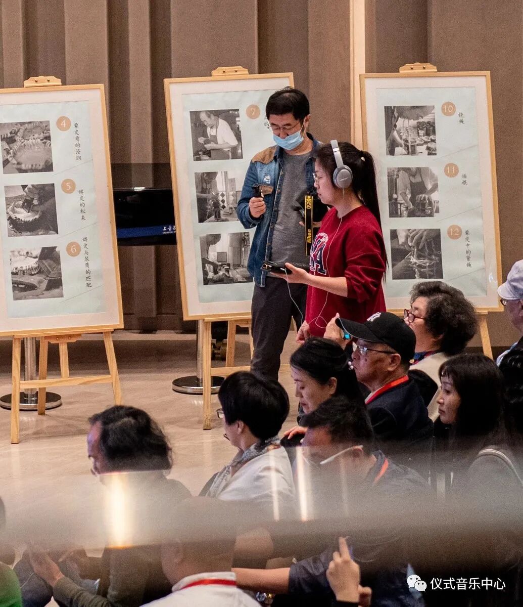 音乐会正式开始之前,同学们统一了视频格式,检查了设备电源是否充足、存储空间是否够用等细节工作。音乐会马上就要开始,同学们专心致志地投入到现场实录工作中了。