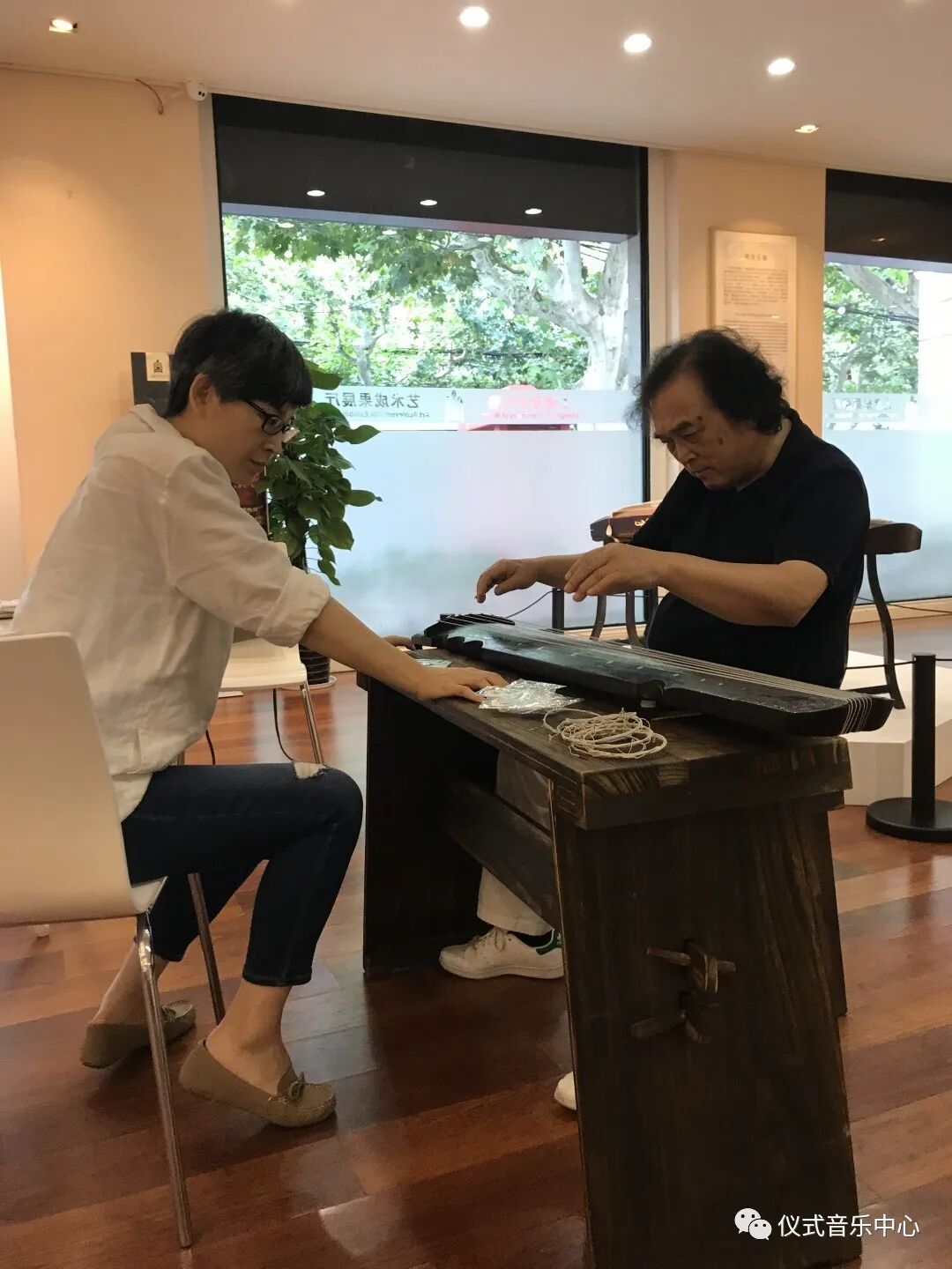 褚婉吟(左)张亮(右)分别试弹金祖礼琵琶