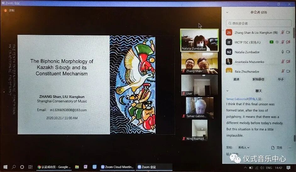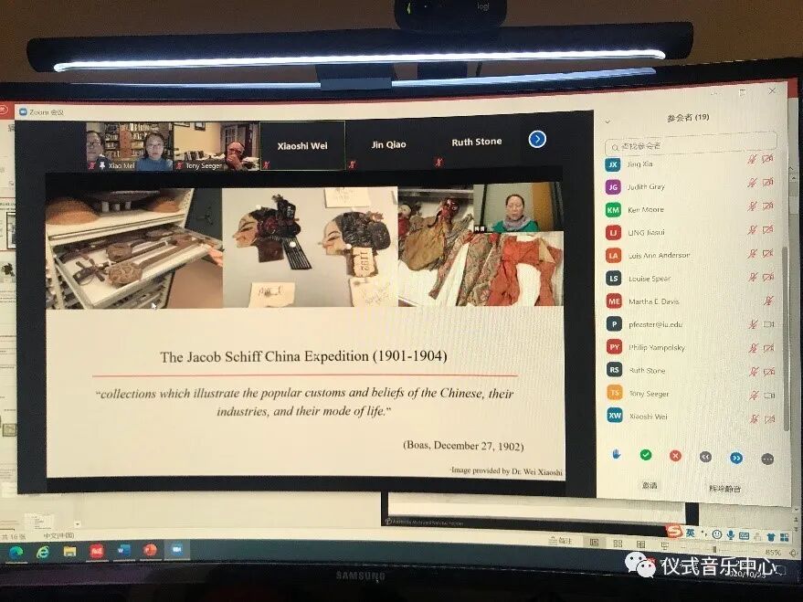 我院亚欧音乐研究中心主任萧梅教授、音乐学系金桥副教授和博士候选人凌嘉穗(导师萧梅)受邀参加此次年会,并于北京时间10月25日(周日)晚10点通过zoom会议软件在线做了题为“中国最初录音:1901-1902伯特霍尔德·劳弗音响特藏”的小组论文发表,得到了安东尼·西格(Anthony Seeger)、露丝·斯通(Ruth Stone)、郑苏(Su Zheng)等民族音乐学界诸位学者的热烈回应、讨论与积极评价。